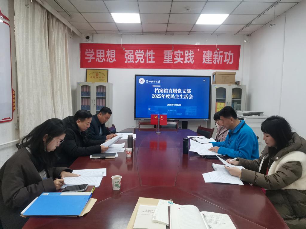 1月12日,档案馆直属党支部在会议室召开2025年度民主生活会,第四督导组组长、校党委常委、副校长李万红及督导组成员党晓军、安盈洁全程督导,全体馆班子成员参加,支部书记刘永滨主持会议。